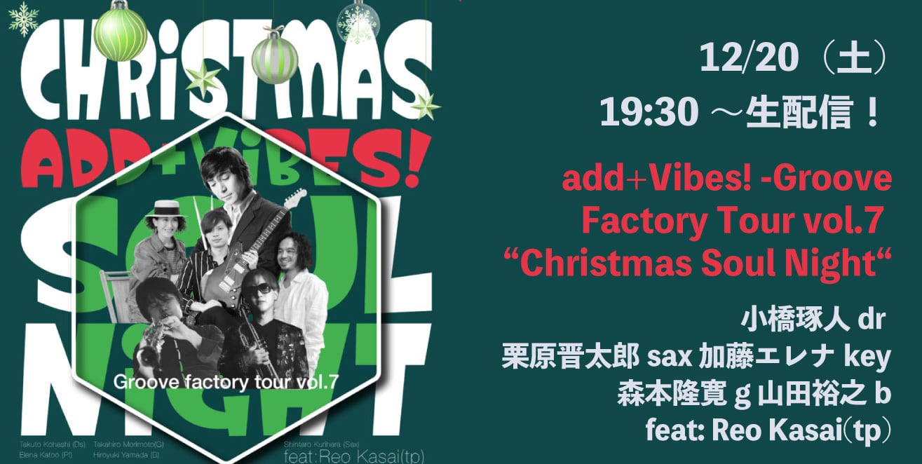 12月20日(土)add+Vibes! -Groove Factory Tour vol.7 “Christmas Soul Night“- 『後売りチケット』¥5,000 | Live Music JIROKICHI