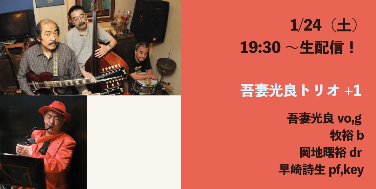 出演:吾妻光良vo,g 牧裕b 岡地曙裕dr 早崎詩生pf,key